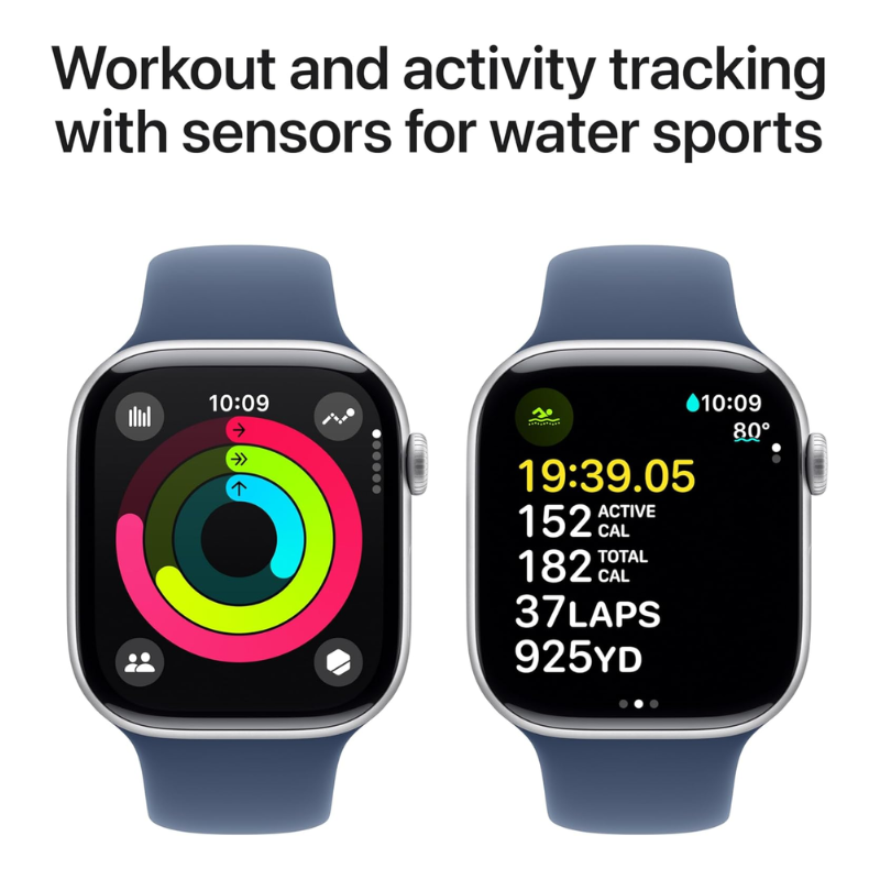 Apple Watch Series 10 GPS 46 mm Smartwatch with Silver Aluminium Case with  Denim Sport Band - M/L. Fitness Tracker, ECG App, Always-On Retina Display,  Water Resistant: Buy Online at Best Price