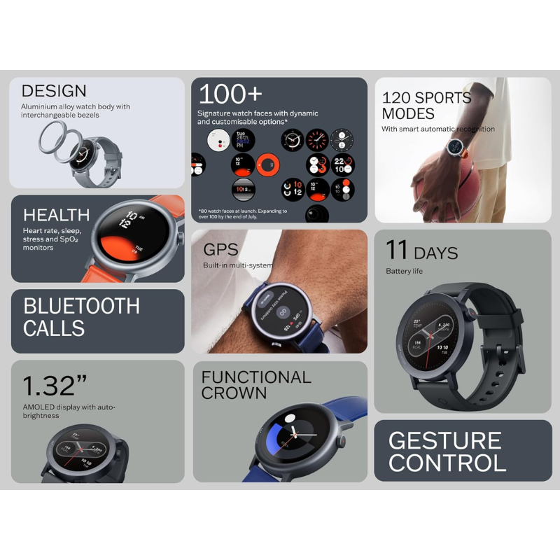 نوثينج سمارت واتش برو 2 سي إم إف رمادي غامق هي ساعة ذكية احترافية عالية الجودة من نوثينج، مع شاشة AMOLED بحجم 1.32 بوصة، دقة عالية جداً، إضاءة عالية وألوان حية وحادة جداً، معالج قوي وسريع، بلوتوث 5.3 سريع وموثوق، تتبع شامل للصحة والنشاط البدني مع عداد الخطوات ومراقبة ضغط الدم ومعدل ضربات القلب وجودة النوم وتتبع الضغط والتوتر وتتبع الأكسجين، مقاومة للماء والعرق بمعيار 5ATM قوية جداً، أوضاع رياضية متعددة حوالي 100 وضع، بطارية قوية تدوم حوالي 12 يوم، شحن سريع عبر شاحن مغناطيسي، تحكم باللمس سلس وسهل، معادلة صحية متقدمة وذكية، تصميم رمادي غامق فاخر وخفيف الوزن وأنيق.