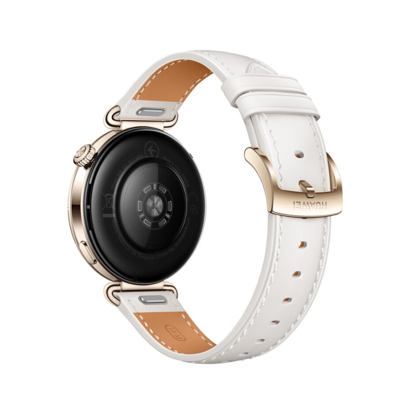 • ساعة HUAWEI WATCH GT 6 (41 مم) – هيكل ستانلس ستيل مع سوار أبيض.