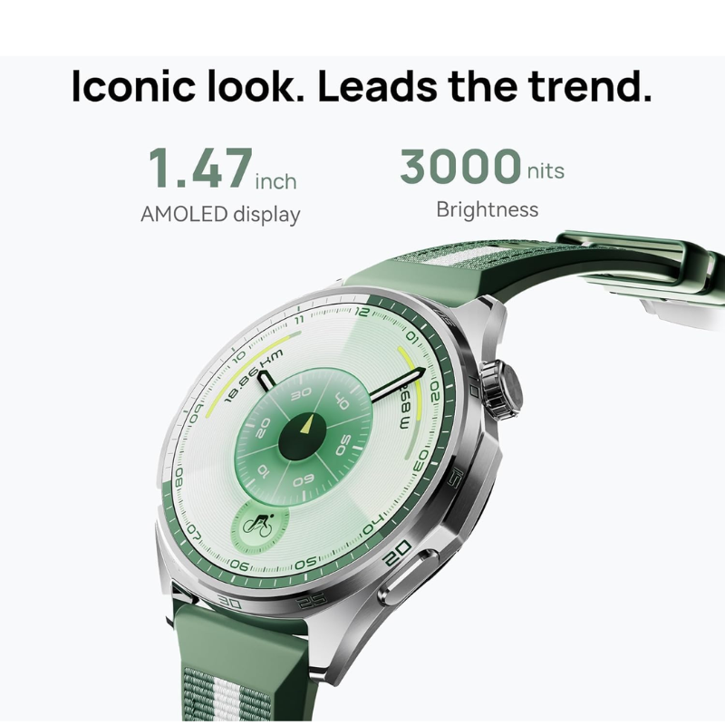 ساعة HUAWEI WATCH GT 6 46mm – هيكل ستانلس ستيل مع حزام أخضر.