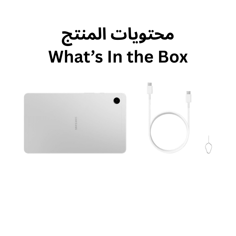 سامسونج جلاكسي تاب A9 (رام 8 جيجا + مساحة 128 جيجا) لون فضي Silver هو تابلت قوي واقتصادي من سامسونج، مع معالج MediaTek Helio G99 الموثوق ثماني النواة، شاشة LCD IPS بحجم 8.7 بوصة، دقة 800×1340 بكسل، تردد 90Hz، وسطوع جيد جداً، رام 8 جيجابايت، وتخزين 128 جيجابايت قابل للتوسيع، كاميرا خلفية 8MP مع تصوير 1080p، كاميرا أمامية 2MP، وبطارية ضخمة 5100mAh تدوم يوم كامل بسهولة، شحن سريع 15W عبر USB-C، نظام Android 13 مع One UI، دعم 4G LTE وWiFi ac مزدوج النطاق وBluetooth 5.3، جاك 3.5 ملم للسماعات، سماعات ستيريو مدمجة، تصميم فضي براق فاخر وخفيف الوزن حوالي 332 جرام.