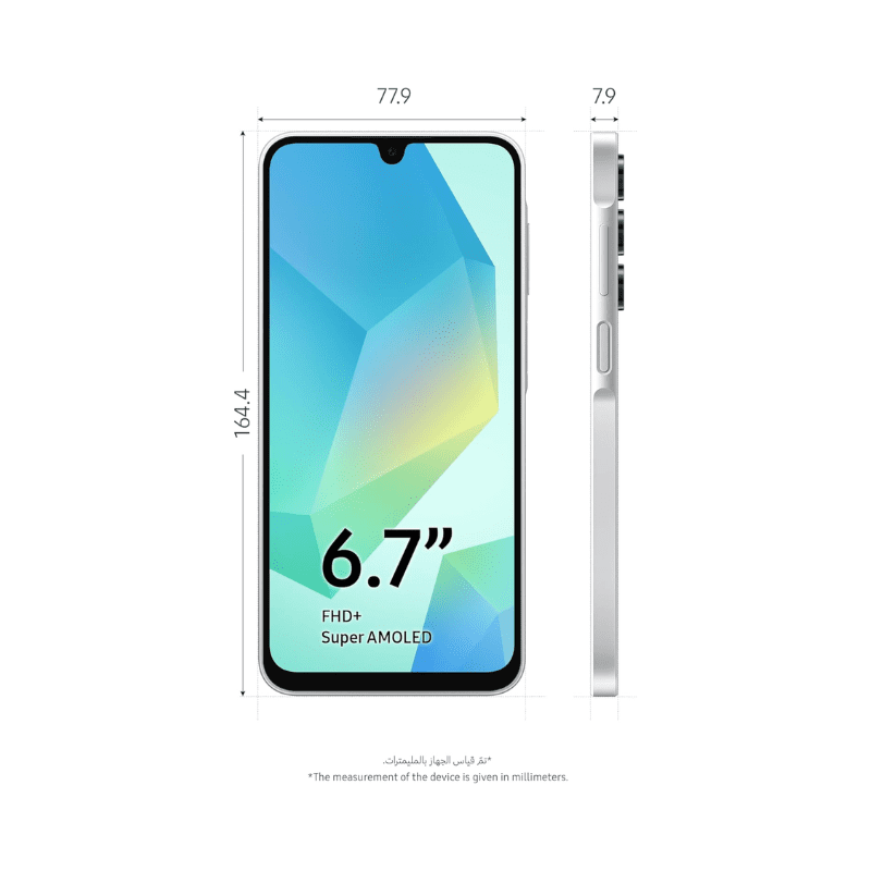سامسونج A16 (رام 4 جيجا + مساحة 128 جيجا) رمادي هو موبايل قوي واقتصادي من سامسونج، مع معالج MediaTek Dimensity 6100 القوي والموثوق، شاشة LCD IPS بحجم 6.7 بوصة، دقة 1600×720 بكسل، تردد 90Hz، وسطوع جيد، رام 4 جيجابايت، وتخزين 128 جيجابايت، كاميرا خلفية ثنائية احترافية 50MP رئيسية + 5MP عريضة، كاميرا أمامية 13MP، وبطارية ضخمة 5000mAh تدوم يومين كاملين، شحن سريع 25W، نظام Android 14 مع One UI Core، دعم 4G LTE وWiFi 5، مقاومة ماء وغبار IP54، ماسح بصمات جانبي، صوت ستيريو قوي، تصميم رمادي أنيق واقتصادي فاخر ووزن 200 جرام.