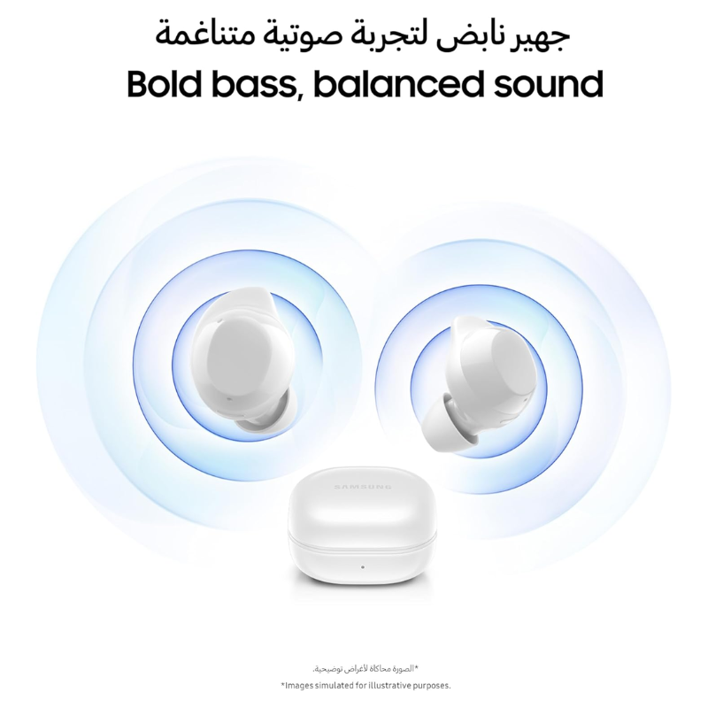 Samsung Galaxy Buds Core أبيض هي سماعات أذن لاسلكية اقتصادية من Samsung بتصميم بسيط وموثوق. تأتي بتقنية Bluetooth 5.3 الحديثة للاتصال السريع والموثوق مع الهاتف والأجهزة الأخرى. تتميز بتصميم بسيط لكن مريح جداً يناسب كل أحجام الأذن. البطارية تدوم 6 ساعات كاملة بشحنة واحدة مع علبة الشحن توفر 18 ساعة إضافية. تأتي مع تقنية الشحن السريع لشحن فعال وسريع. السماعات خفيفة جداً وتصميم مريح جداً بدون ألم. جودة الصوت جيدة جداً مع توازن صحيح بين الباص والتفاصيل. ميكروفون محسّن لإلغاء ضوضاء جيد في المكالمات. مقاومة الماء والعرق IPX7 قوية جداً. نطاق الاتصال اللاسلكي يصل إلى 10 متر بدون تقطيع. تصميم أبيض أنيق وعصري وحديث ونقي. سعر معقول جداً للجودة.