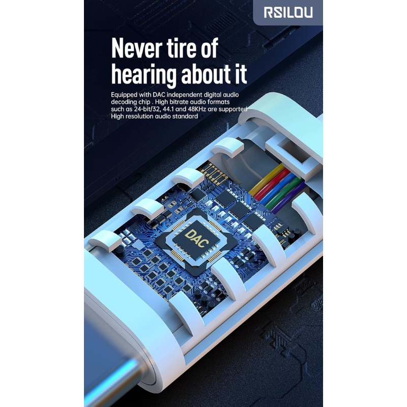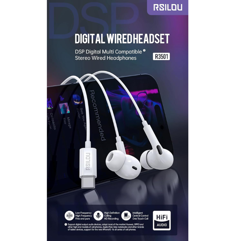 المميزات الرئيسية | Rsilou Earphone Type-C 10MM R3501-001 سماعة احترافية