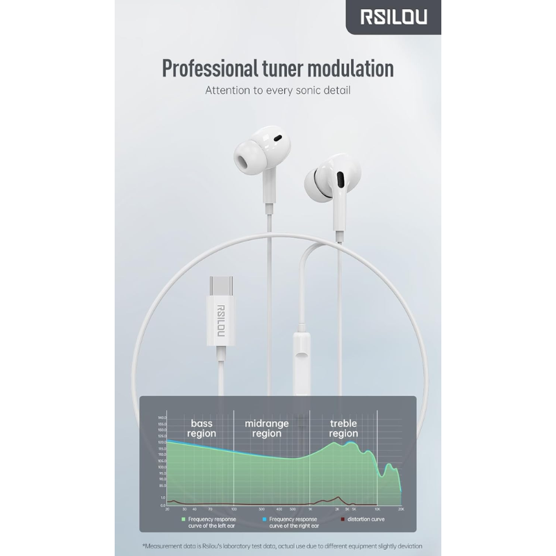سماعة آر سيلو احترافية موصولة Rsilou Earphone Type-C 10MM – تايب سي – موديل R3501-001