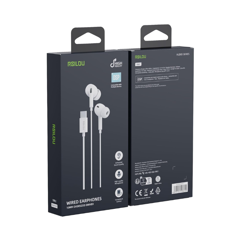 📦 محتويات العلبة | Rsilou Earphone Type-C 10MM R3501-001