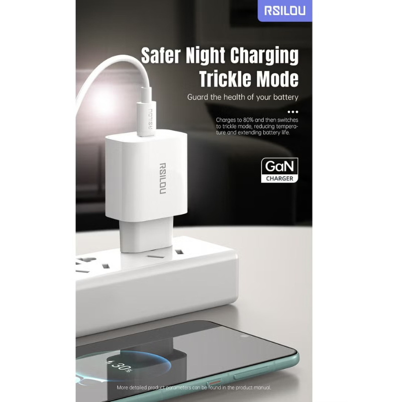 المميزات الرئيسية | Rsilou Charger Type-C Lightning GAN 20W R4232-002 شاحن احترافي