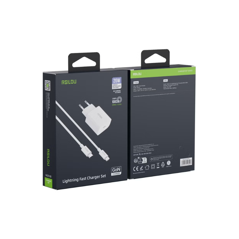 📦 محتويات العلبة | Rsilou Charger Type-C Lightning GAN 20W R4232-002