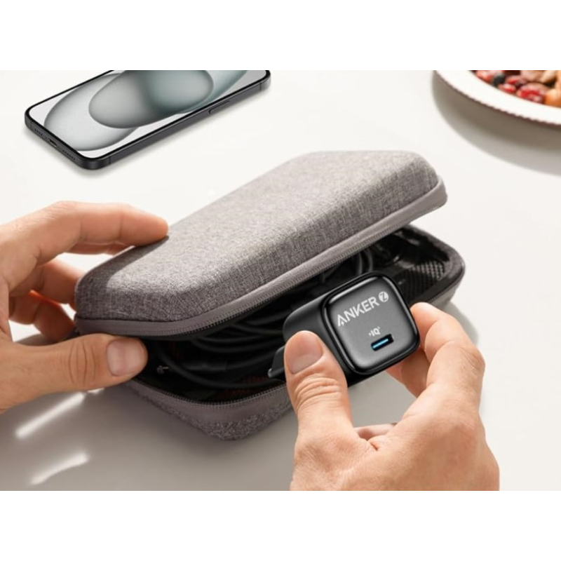 شاحن Anker Zolo 30W هو شاحن حائط قوي بتقنية GaN مدمجة، مزوّد بمنفذ USB‑C واحد يدعم الشحن السريع PD حتى 30 وات، مناسب لشحن موبايلات آيفون، سامسونج، شاومي، تابلت، وحتى بعض اللابتوبات الصغيرة مثل MacBook Air وiPad بسرعة أعلى بثلاث مرات تقريباً من الشواحن التقليدية 5W. الشاحن يدعم بروتوكولات PD2.0/PD3.0 وQC2.0/QC3.0 وPPS وPowerIQ 3.0، ما يجعله متوافق مع معظم الأجهزة الحديثة ويضمن شحن ذكي يعطي كل جهاز القدرة المناسبة بدون ضرر أو سخونة زائدة.