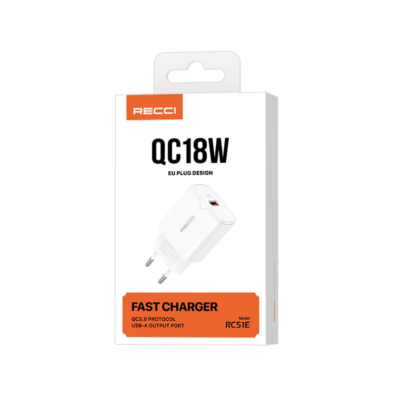 Recci Charger Plug QC 18W موديل RC51E هو شاحن كهربائي احترافي من Recci بتصميم قوي وعملي يوفر شحناً سريعاً وآمناً بقوة 18W. الشاحن مصنوع من مواد عالية الجودة والقوة جداً (بلاستيك معزز وحماية حرارية) توفر متانة عالية جداً وحماية كاملة من الحرارة والأعطال. يدعم معيار QC (Quick Charge) الشهير والموثوق يوفر شحناً سريعاً جداً للهواتف الذكية والتابلتات. منفذ USB قياسي عالي الجودة يتوافق مع جميع الأجهزة التي تدعم شحن USB. حماية متقدمة جداً من الضغط الزائد والقصور والحرارة الزائدة توفر أماناً عالياً جداً. تصميم مريح وخفيف الوزن يسهل الحمل والتخزين والتنقل بسهولة. شاشة LED ذكية توضح حالة الشحن والبطارية بوضوح. كفاءة طاقة عالية جداً توفر استهلاكاً منخفضاً للكهرباء والحفاظ على الطاقة. متوافق مع جميع الهواتف الذكية والتابلتات والأجهزة الإلكترونية التي تدعم شحن USB.