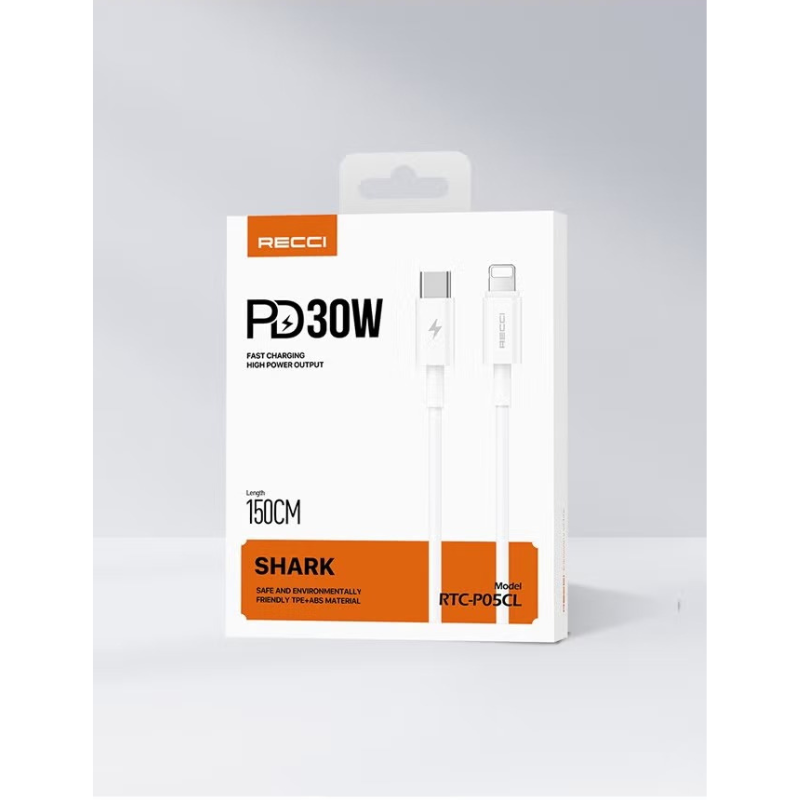 Recci Cable Type-C to Lightning PD 30W موديل RTC-P05CL هو كابل احترافي من Recci يوفر شحناً سريعاً جداً وآمناً بين أجهزة USB-C و iPhone مع دعم معيار PD بقوة 30W. الكابل مصنوع من مواد عالية الجودة والقوة جداً (ألياف نايلون معززة) توفر متانة عالية جداً وحماية كاملة من التلف والكسر. يدعم معيار PD (Power Delivery) الحديث يوفر شحناً ذكياً وسريعاً جداً لأجهزة آيفون والأجهزة الأخرى. قوة 30W توفر شحناً سريعاً جداً وكافياً لأجهزة آيفون بكفاءة عالية جداً وموثوقة. طول الكابل 1.5 متر يوفر مرونة عالية جداً في الاستخدام والتنقل بسهولة وراحة. التوصيل الآمن والموثوق يوفر اتصالاً قوياً وآمناً بدون انقطاع أو مشاكل في النقل. حماية متقدمة من الضغط الزائد والقصور والحرارة توفر أماناً عالياً جداً للأجهزة. تصميم أنيق وحديث يعطي مظهراً احترافياً وعملياً وجميل جداً. مرنة وسهلة الاستخدام والحمل والتنقل مع الأجهزة الأخرى بسهولة وراحة. متوافقة تماماً مع جميع أجهزة آيفون والأجهزة التي تدعم USB-C و Lightning.