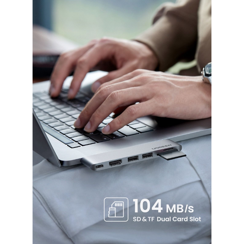 | الاسم SEO | محول يوجرين Type‑C 6‑في‑1 للماك بوك مع HDMI وقارئ كروت وشحن PD حتى 100 واط (80856) |