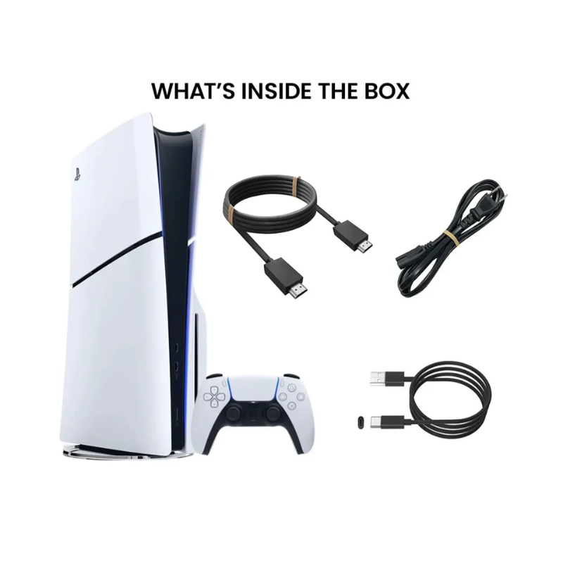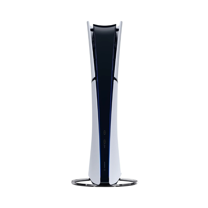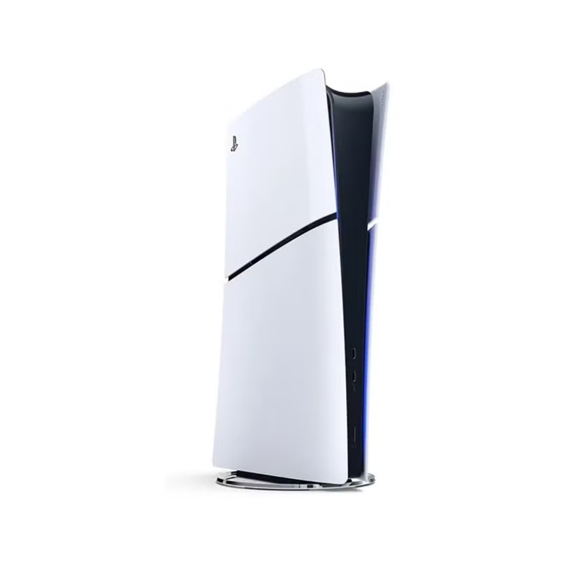 • نسخة سليم أنحف وأخف من الـ PS5 العادي، بتصميم أبيض/أسود أنيق وحجم يناسب المساحات الصغيرة حول التلفزيون.